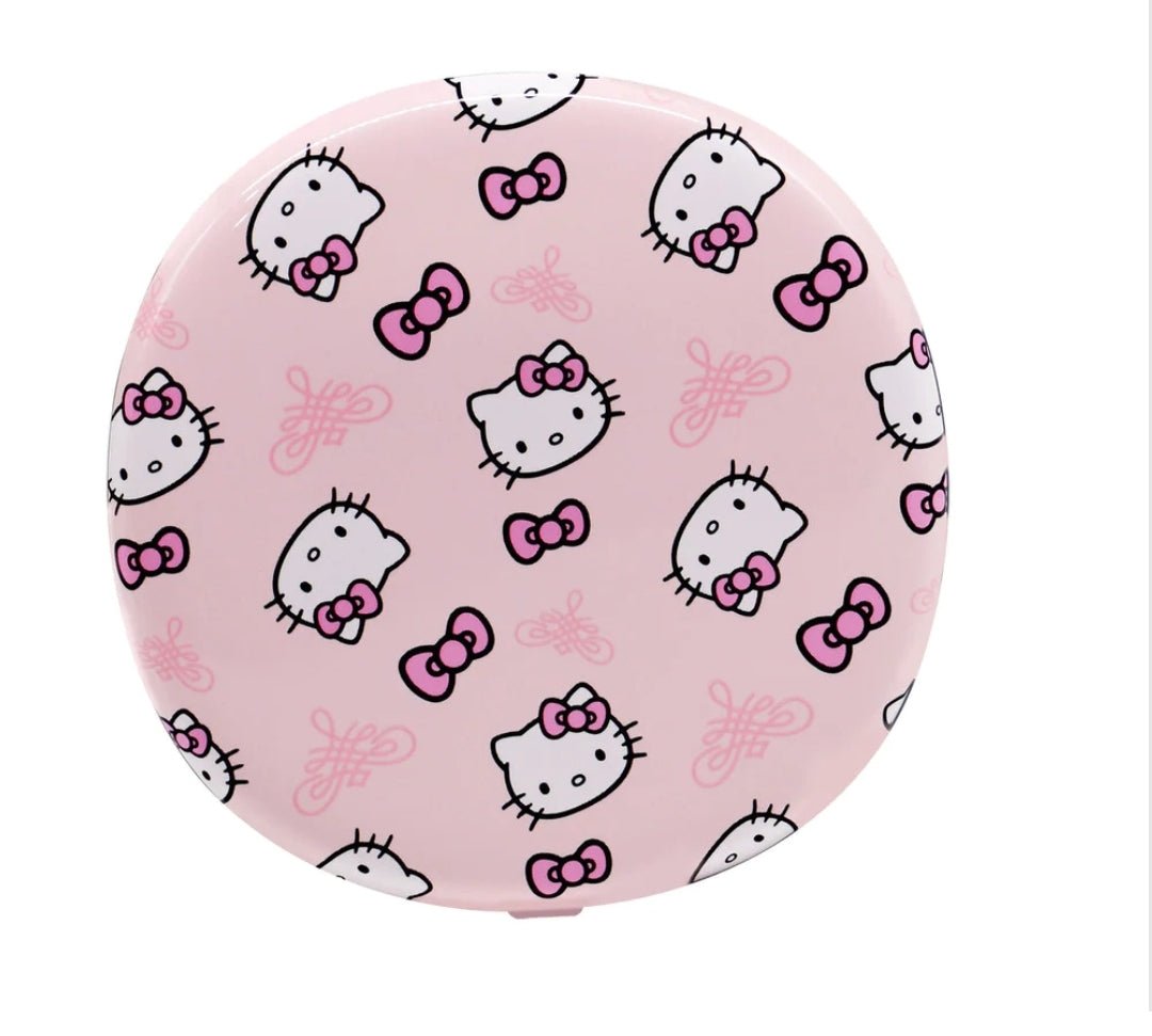Introducing the Hello Kitty® LED Compact Mirror. Keep Hello Kitty and her iconic bows always at hand with this slim and portable size; plus, its energy-efficient LED lighting combined with the 3X mirror ensures you won't miss a single detail! Get ready to look supercute even in low light